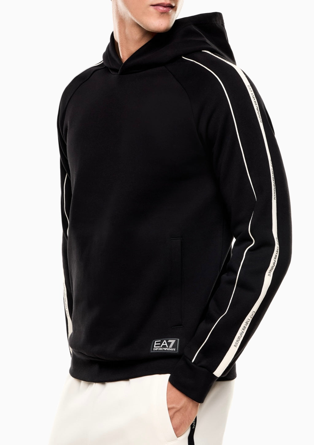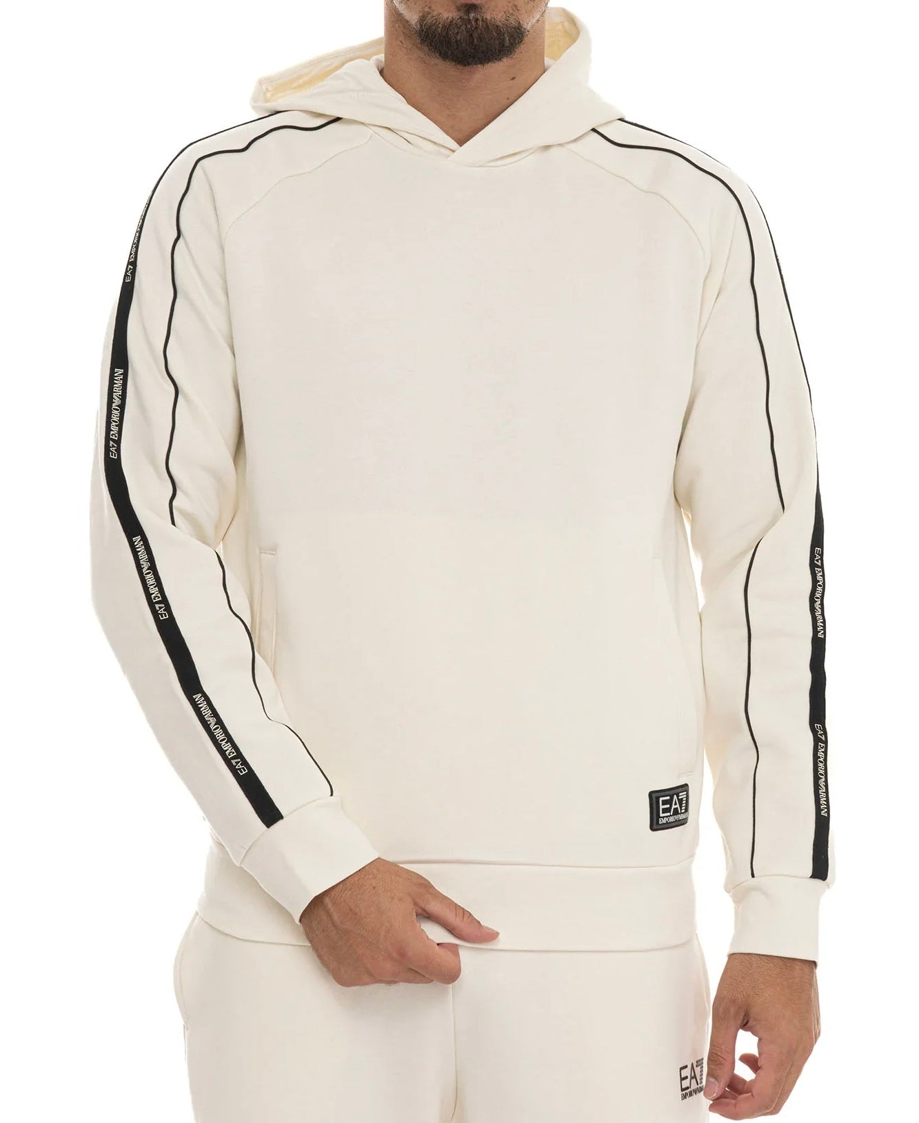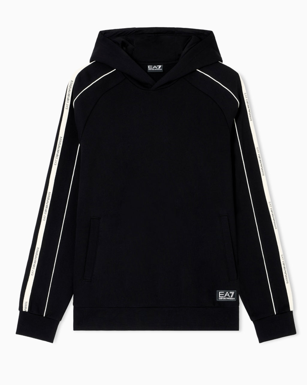 Realizzata in tessuto morbido e confortevole, garantisce una vestibilità impeccabile e adatta all’uso quotidiano. Il cappuccio avvolgente e le tasche laterali assicurano praticità, mentre la patch EA7 sul fondo aggiunge un tocco premium e riconoscibile.