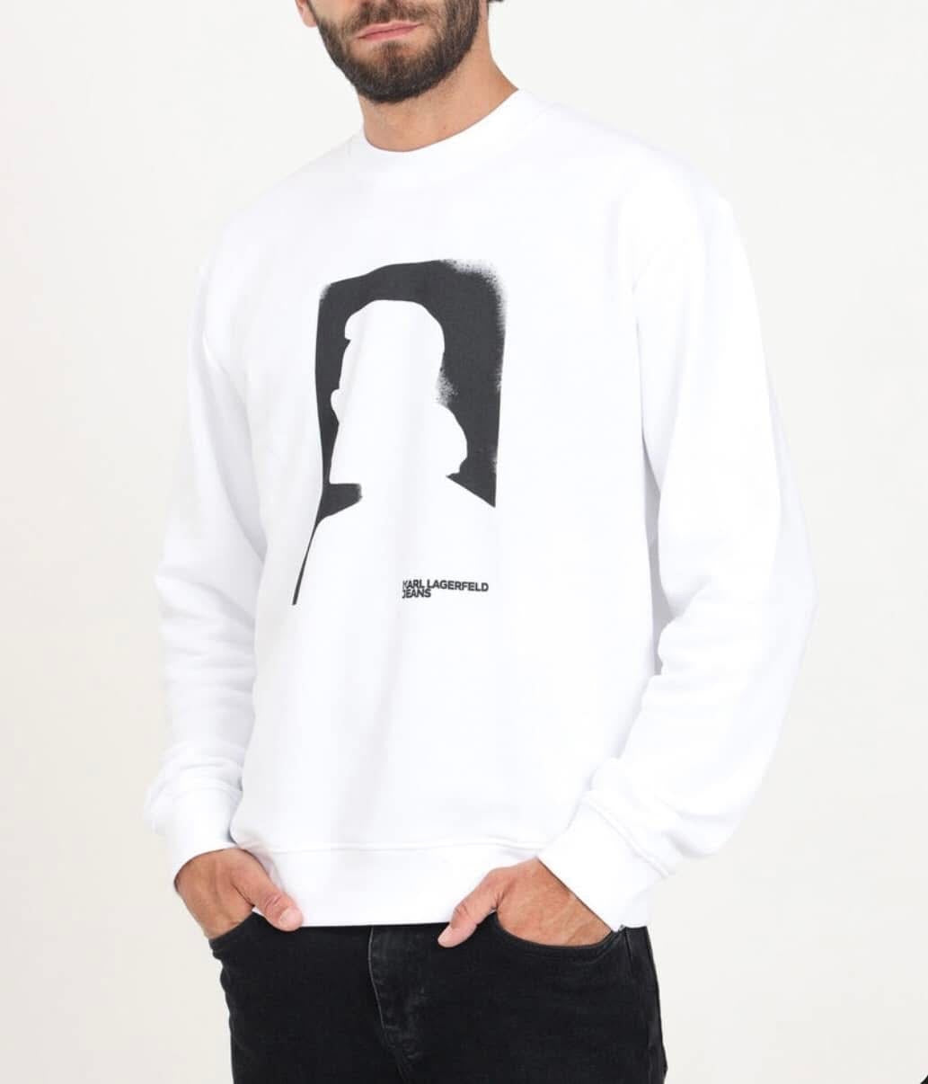 Felpa Karl Legerfeld senza cappuccio, realizzata in morbido cotone felpato di alta qualità.