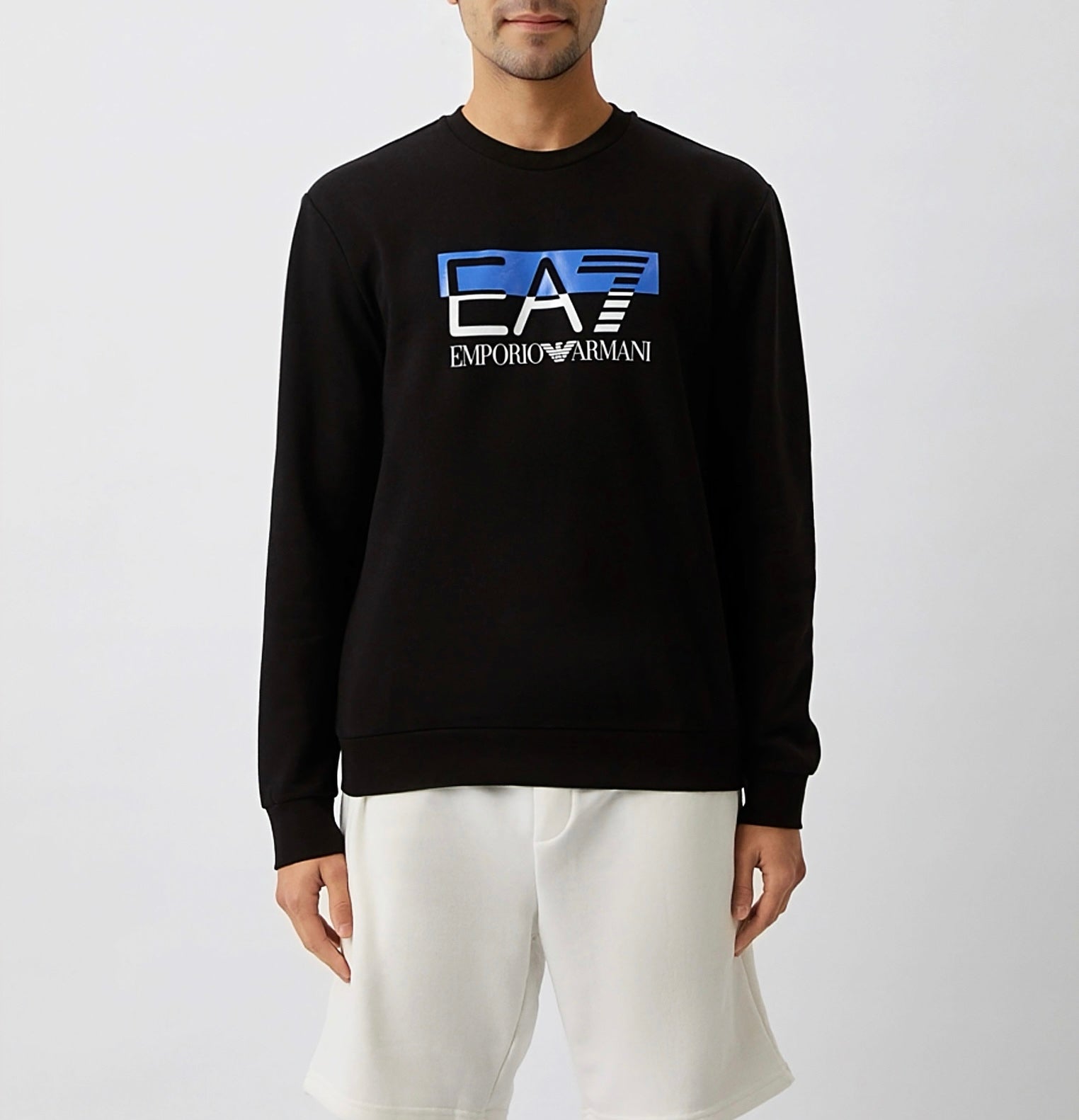 Felpa Armani EA7 senza cappuccio, realizzata in morbido cotone felpato di alta qualità.